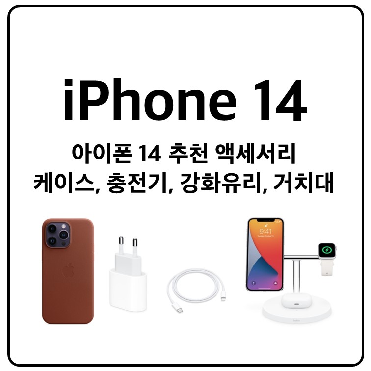 2022년 아이폰 14 구매 예정자를 위한 필수 추천 액세서리 중 케이스, 충전기, 강화유리(보호필름), 차량용 맥세이프 충전 거치대, 외장 배터리 등을 자세하게 정리하였다.